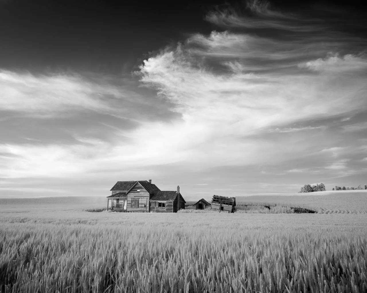 Another view of the Weber house, showing how these abandoned buildings on the Palouse become part of the agricultural landscape.